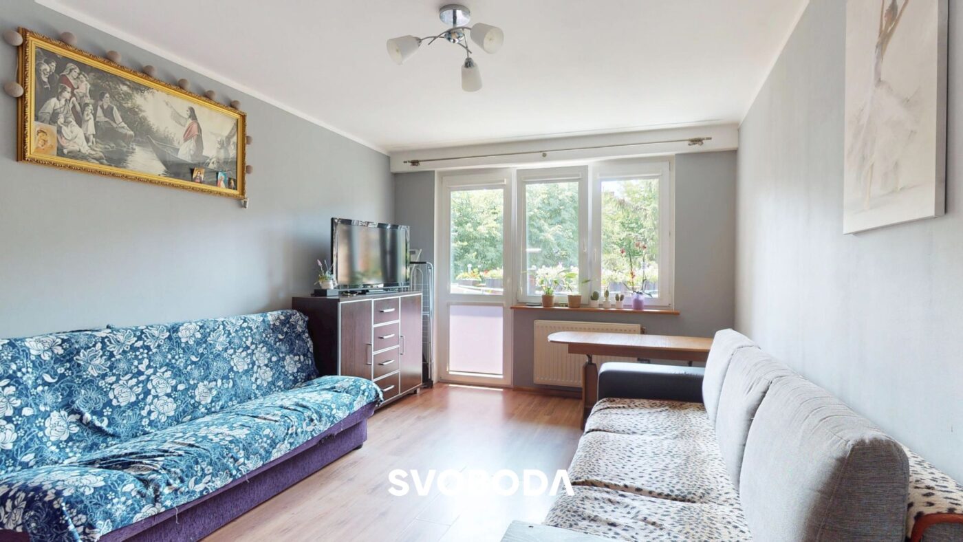 Lokal znajduje się na parterze czteropiętrowego, zadbanego bloku z lat 90. Budynek otoczony jest zielenią, a w pobliżu znajdują się sklepy, szkoła, tereny rekreacyjne oraz przystanki komunikacji miejskiej.Mieszkanie składa się z przestronnego salonu z aneksem kuchennym i wyjściem na balkon, oddzielnej sypialni, łazienki oraz kuchni. Układ pomieszczeń jest funkcjonalny i zapewnia komfort codziennego użytkowania.