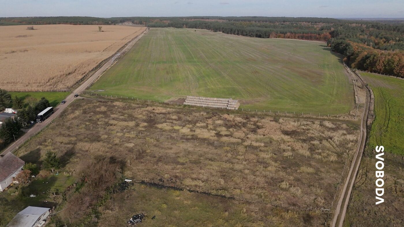 Media znajdują się w pobliżu — około 40 metrów od granicy działki dostępny jest prąd, woda i kanalizacja, co znacząco ułatwia przyszłą realizację inwestycji i obniża koszty podłączeń.