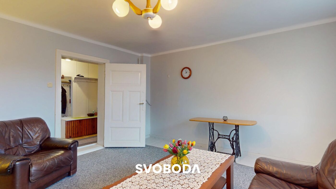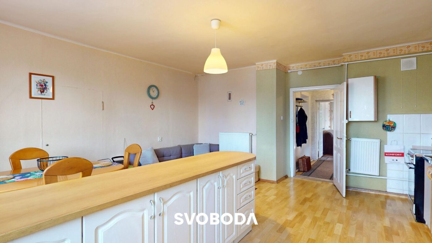 -Układ pomieszczeń: 3 pokoje, kuchnia, przedpokój, łazienka, strych, wspólna piwnica,