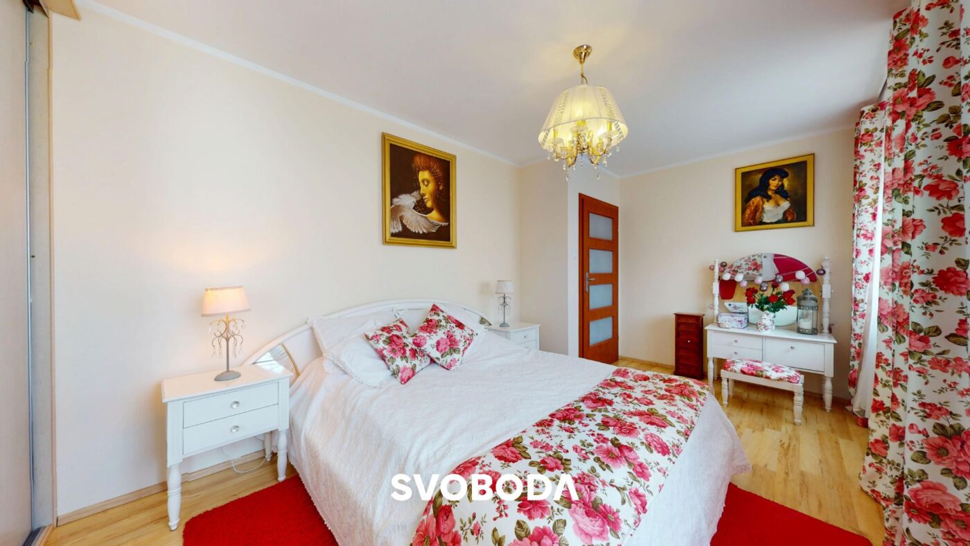 W sypialni pozostaje szafa w zabudowie, natomiast pozostałe elementy wyposażenia nie wchodzą w skład oferty. Salon połączony jest z kuchnią i jadalnią, co daje dużą i funkcjonalną przestrzeń dzienną. Został on dobrze doświetlony dzięki dużym oknom. W salonie znajduje się również szafa w zabudowie typu komandor, która pozostaje na wyposażeniu mieszkania. -